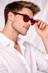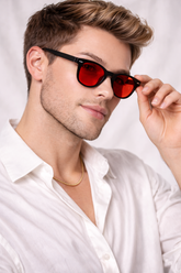 Rødfargede blue light-briller er spesialdesignede briller med rødfargede linser som blokkerer de mest forstyrrende lysbølgelengdene fra skjermer og kunstig belysning. Ved å filtrere bort blått lys, lar de kroppen opprettholde sunne melatoninnivåer og naturlig forberede seg på en roligere og mer avslappende nattesøvn. Dette gjør dem spesielt effektive ved bruk på kveldstid.